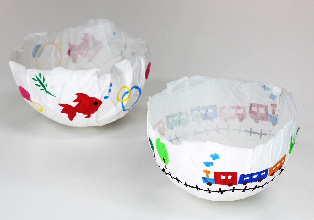 風船に半紙を張りつけて作る「張り子」のうつわ。大切な宝物を入れよう!